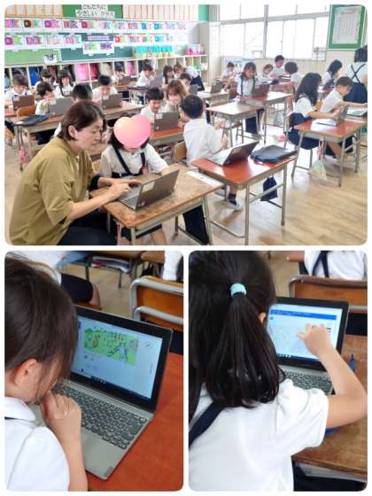 5時間目、1年生は学習者用端末を使って、navimaをしていました。まだ2回目ということで、使い方には慣れていませんが、やる気満々。次々とチャレンジしていました。あっという間に時間が過ぎてしまいました。子ども達は、すぐに使えこなせるようになります。次回も子ども達のお助けに行きたいと思います。