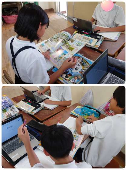 くらしの工夫について、学習者用端末・教科書・資料集など、自分が調べたい方法を選んで調べ始めました。一人で調べる子、二人組で調べる子、4人グループで調べ始めてから役割分担をして詳しく始める子ども達もいました。主体的に学習が進んで充実した時間になりました。