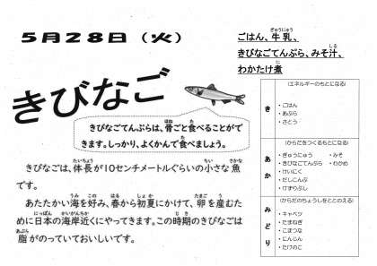 だしがよくきいたわかたけ煮は春が旬の食べもを使っています。これもおいしそうに食べていました。そういえば、春もそろそろ終わりです。
