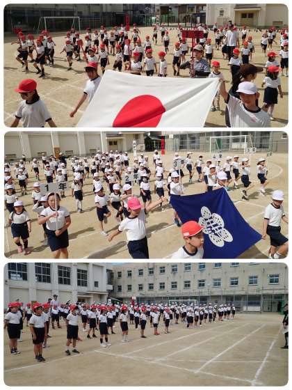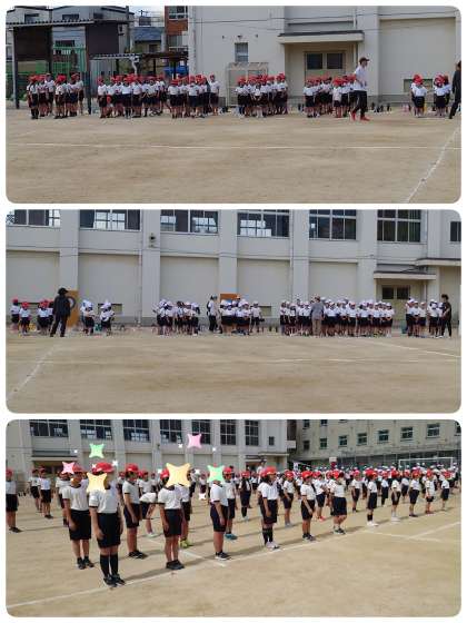 優勝旗・準優勝楯の返還、はじめのことばと順に練習が進みましたが、どの子も真剣な表情で取り組んでいました。閉会式の優勝旗・準優勝楯の授与、得点発表の練習も行いました。いよいよ明日は、運動会の予行です。