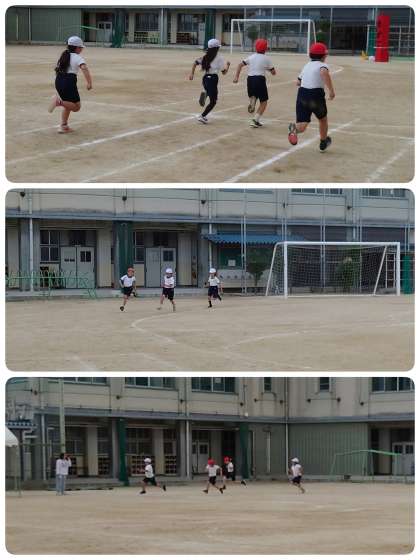 どの子もがんばって走っていました。応援の声が運動場に響き渡っていました。