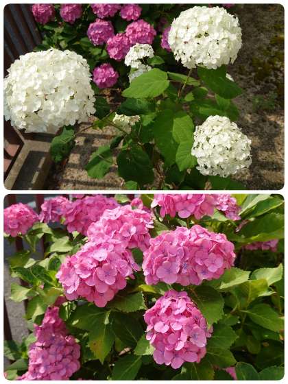 東校舎の裏にとても鮮やかなアジサイが咲いています。ピンク・紫・白のアジサイです。満開でとってもきれいです。道路から見えますので近くを通ったときに見てくださいね。