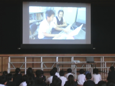11月19日(木)始業前、児童集会で「情報委員会」の活動発表がありました。9月から脚本をつくって配役を考え、ビデオ撮りをして、みんなの前で発表しました。情報委員会では、児童から曲のリクエストをとり、給食の時間に音楽を放送しています。自分のリクエストした曲が流れるかもしれませんので、楽しみにしていてください。