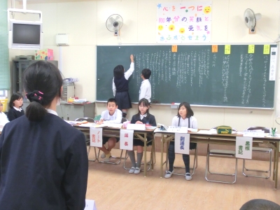 11月19日(水)放課後、「第7回代表委員会」がありました。今日の議題は、「ハッピースマイルウォークを振り返ろう」です。