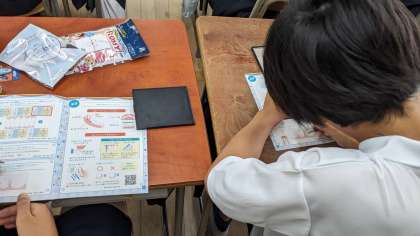 DVDを見ながら歯肉炎について学び、みがき方やデンタルフロスの使い方を実践練習しました。