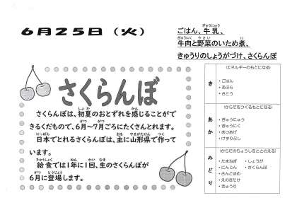 よく熟れていて甘いさくらんぼのデザート付きで、今日もしっかり食べました。