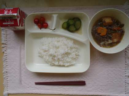 きゅうりのしょうがづけは、しょうがの香りがさわやかな献立です。牛肉と野菜のいため煮のこってり感をさっぱりとさせてくれて、いい組み合わせです。