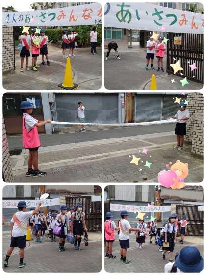 今日のあいさつ運動も運動委員会の子ども達が活躍しました。「おはよう」のあいさつと共に登校してきた子ども達にうちわで風を送っていました。やさしいですね。