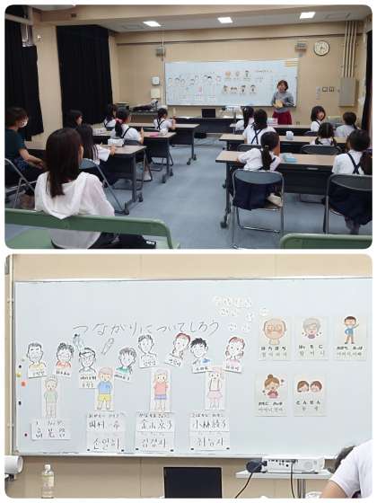 今日のチングの会は参観で、保護者の方が来てくださいました。今日の学習は、「つながりについてしろう」でした。イルム(名前)を大切に、つながりを大切にしていこうということで、ハラボジ(おじいちゃん)、ハルモニ(おばあちゃん)、アボジ・アッパ(おとうさん)、オンマ・オモニ(おかあさん)、オンニ・ヌナ(おねえさん)、オッパ・ヒョン(おにいさん)、トンセン(下のきょうだい)とたくさんのことばも覚えました。