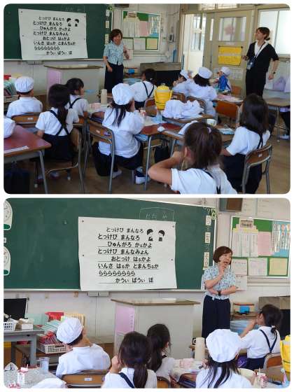 今日は、ソンセンニムが1年生と一緒に給食を食べてくれました。給食後に、ソンセンニムが歌を教えてくれました。体を動かすふりもついています。かわいいトッケビも登場しました。子ども達はとってもうれしそうにソンセンニムとお話しながら活動していました。