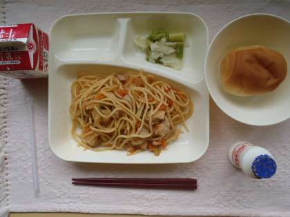 スパゲッティをパンにはさんで楽しそうに食べている人もいて、今日もしっかり食べました。