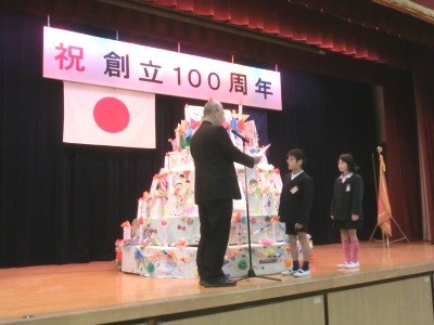 11月28日(土)の「おおきに中浜。100才おめでとう集会」は、全校児童の協力により素晴らしいお誕生日会になり、よい思い出になりました。午後からの「中浜フェステバル」は、PTAの方が力を合わせて、早くから事前準備を行い、連日夜遅くまで会場設営をしてくださいました。
