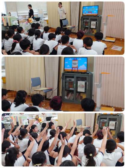 今日から子ども達の発育測定が始まりました。測定の前に保健室の先生から、「けが・緊急時の対応について」のお話がありました。とってもわかりやすいプレゼンを作ってくれていたので、子ども達は3択クイズを楽しみながら、しっかりお話を聞くことができていました。4月からどのくらい大きくなったかな。