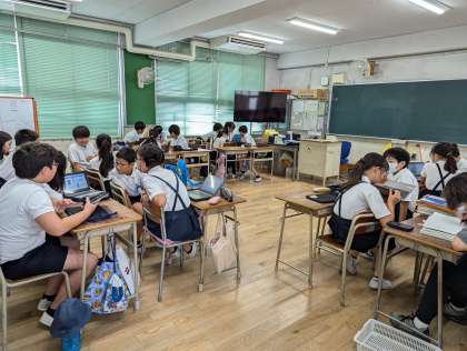 6年生は「水よう液の性質」を学習しています。今日は「どんな水よう液があるか」について、学習者用端末で調べ、学級で交流をしました。ジュースや洗剤など、幅広く水よう液について調べることができました。