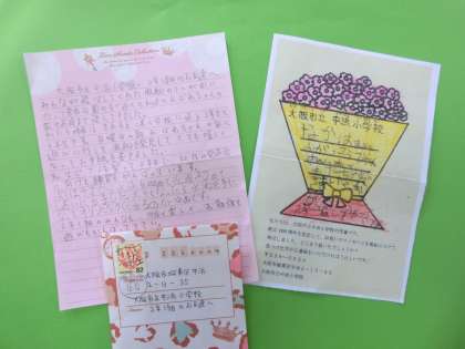 「中浜小学校2年1組のお友達へ。みんなが飛ばしてくれた風船の一つが風に乗って奈良公園のすぐ近くの私たちのおばあちゃんの家のお庭まで飛んできました。私たち姉弟は奈良市立小学校に通う5年生と3年生です。風船を発見してとても嬉しくなってお手紙を書きました。‥‥2年1組のみんなも仲よく楽しく、お勉強も遊びもがんばってください。」