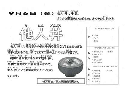 牛肉と卵を使った他人丼は、人気の献立で、みんなパクパク食べていました。