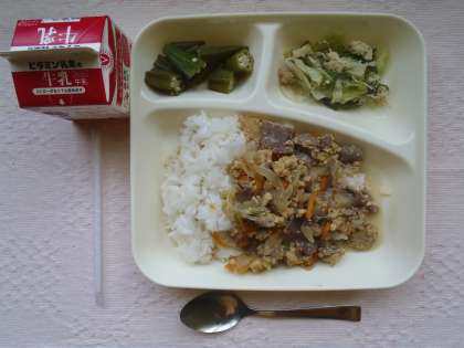 ささみと野菜のいため物は、ピーマンの苦みが少なく食べ、すい献立でした。
