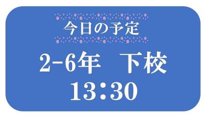 5時間目に1年生の学級で研究授業を実施します。2〜6年生は、給食・清掃後、13:30の下校になります。1年生は、通常通り5時間目が終わってから下校します。ご予定よろしくお願いします。