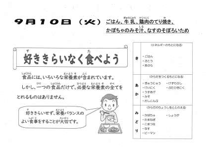 今日の給食には、ピーマン、なす、かぼちゃが使われています。夏の日差しから守るために、皮の色が濃いものが多いです。