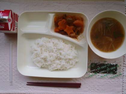 今日の酢豚は、ラッキーにんじん♪が入っています。それと、初めてですが、ラッキーピーマンが入っています。見つけた人は、嬉しそうに、大事に食べていました。