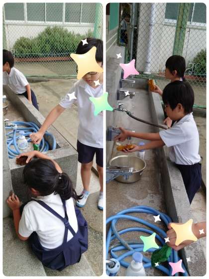 手洗い場をゴシゴシゴシゴシ。気合か入ってこすってくれていました。おかげで手洗い場はピッカピカ。一生けんめいがんばっている2年生でした。