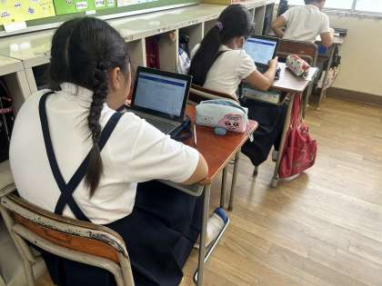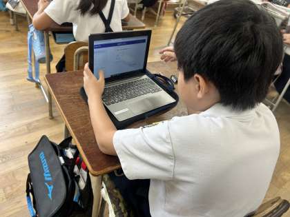 学習時間の最後、4年生の子ども達がスタディーサプリを使って、自主学習をしています。特に、算数の学習に取り組んでいた児童が沢山いました。