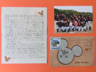三重県松阪市の6年生のお友だちからは、お手紙とソフトボールチームの写真が送られてきました。