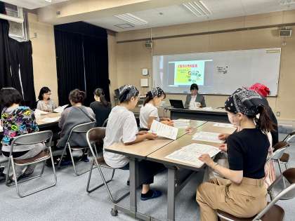 給食を試食する前に、栄養教諭の青木先生から給食についての講話がありました。