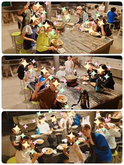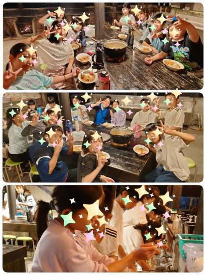 食べ終わってからの後かたづけも協力して、大きな鍋を洗っていました。
