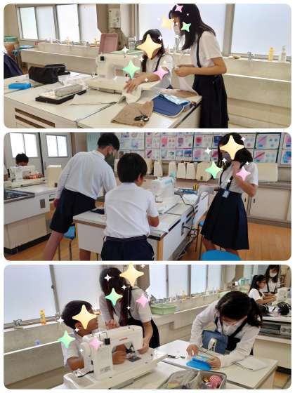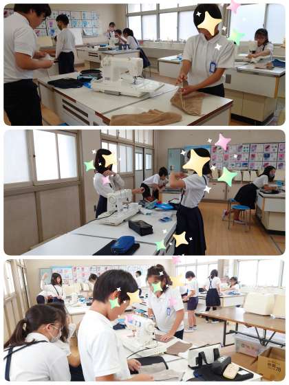6年が、家庭科室でミシンを使って雑巾を縫っていました。グループで今日縫うところについてまで相談して縫っているようでした。何か6年生は学校のためになる自分達でできる恩返しを考えているようです。これからどんな活動をするのかとても楽しみです。