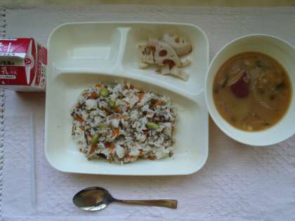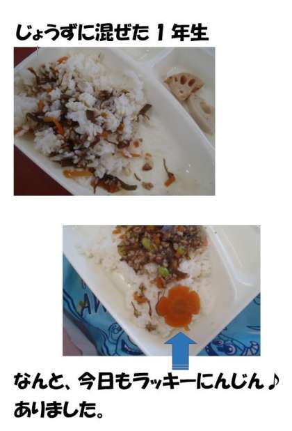 そして、なんと、今日もラッキーにんじん♪が入っています。混ぜると崩れるので、別にして食べていました。