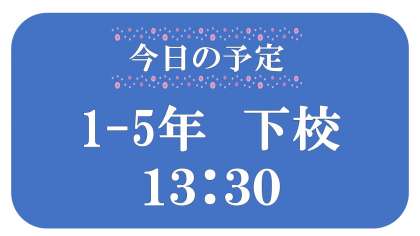 5時間目、6年生の学級で研究授業を行います。そのため1〜5年生の下校は、13:30になります。ご予定よろしくお願いします。