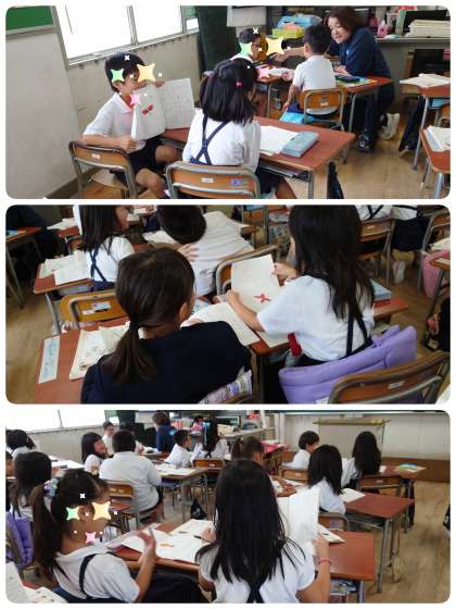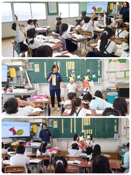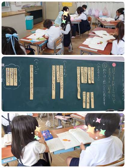 国語の学習の様子です。今日のめあては、「話を楽しくつないで友達と話そう」でした。