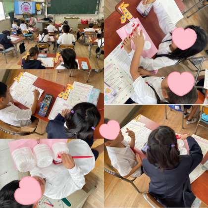 3時間目、養護教諭の先生と一緒に第一大臼歯について学習をしました。