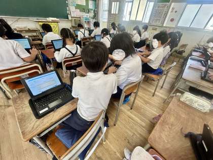 最後に、それぞれのグループの意見交流の内容を学級のみんなで確認し、相手を傷つける言葉はないか、いやな気持になる言葉はないかなど確認し、メディアリテラシーの学習にも、繋げていました。