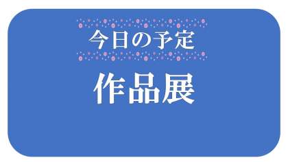 作品展は、今日と月曜日に実施します。正門からお入りください。