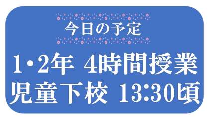 1・2年生は、昨日の6時間授業の振り替えで、今日は4時間授業です。13:30ごろに下校します。ご予定よろしくお願いします。