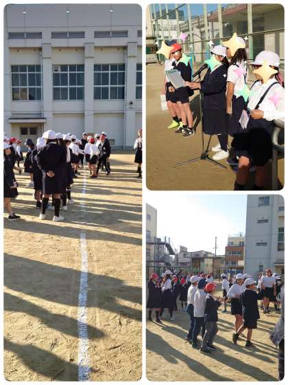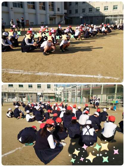 今日の児童集会は○×クイズでした。問題は5問。先生に聞いてきて問題です。1問1問、学年を越えて仲よくクイズに参加していました。