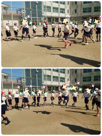 4年生は、体育の時間に大縄跳びの練習をしています。先日、4年生の子どもが100以上跳べたよと大喜びで話してくれました。最初の頃は、5回ぐらいだったそうです。見に来てねと言われていたので、今日の4時間目の体育の時間に見に行きました。先生も子どもも歓迎してくれたので、先生と一緒に大縄を回しました。「1.2.3.4・・・」子ども達の元気な声が、回数が増えていくと必死の声に変わっていきます。みんなの心がひとつになったように思いました。