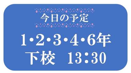 5時間目に5年生の学級で研究授業を行います。そのため、1・2・3・4・6年の下校は13:30、5年の下校は14:40ごろになります。ご予定よろしくお願いします。