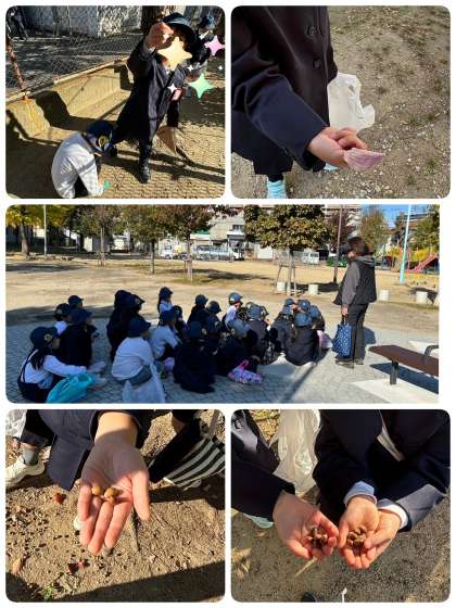 1年生が地域の公園めぐりに出かけました。中浜中央公園と中央公園で秋を探し、遊具でも遊びました。とっても楽しかったようで、「ただいま。」の元気な声で帰ってきました。