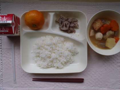 関東煮は、ホクホクのじゃがいもやだいこんで体が温まります。そして、ラッキーにんじん♪ラッキーだいこん♪ラッキーじゃがいも♪で心も温まります。(今日も幸せです。)