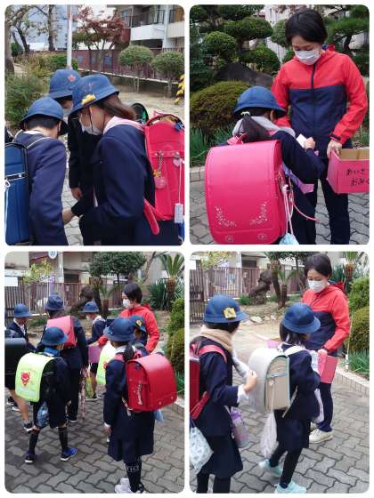 あいさつ週間で取り組んでいる「あいさつおみくじ」。登校してくる子ども達はとても楽しみにしています。あと2日間でどんなステキなクリスマスツリーができあがるのかな。