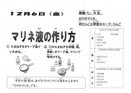 玉ねぎ入りのマリネ液がよくからんださけのマリネ、プチプチ食感の押しむぎと大きな肉だんご入りの野菜たっぷりのスープ、どれもおいしくて、パクパク食べていました。