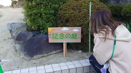 記念の庭の立札がリニューアルしました。管理作業員さんと教務主任さんとの合作です。かわいい立札にしてみたそうです。