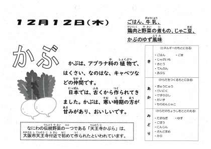 かぶのゆず風味は、かぶの火の通し具合がよく、ゆずの香りがさわやかな調味液がしみこんで、よい箸休めになります。