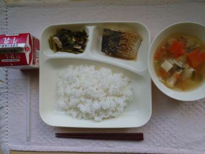具だくさんでだしのきいたみそ汁と一緒に、今日もしっかり食べました。
