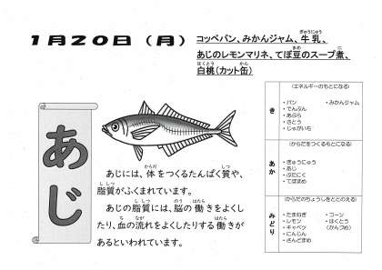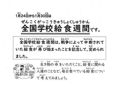 ※中浜小学校の給食週間は、1月20日から1月24日までです。