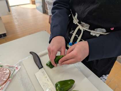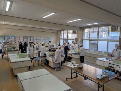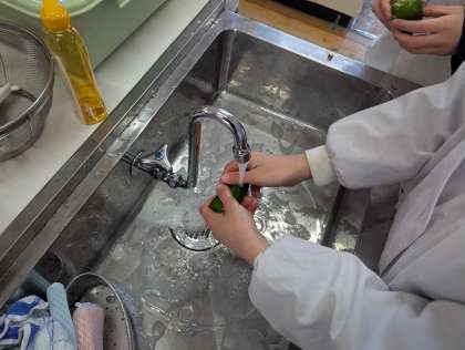 調理実習では、野菜を洗ったり、具材を切ったり、机の上を整理したりと、それぞれ自分たちができることを考え、一生懸命に取り組んでいました!!