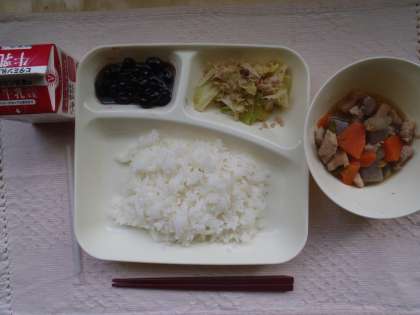 筑前煮は、にんじんやれんこんなどの根菜、こんにゃくといった、かみごたえのある食べ物がたくさん入っています。よくかむと、だしの味が出てきて、おいしくなります。